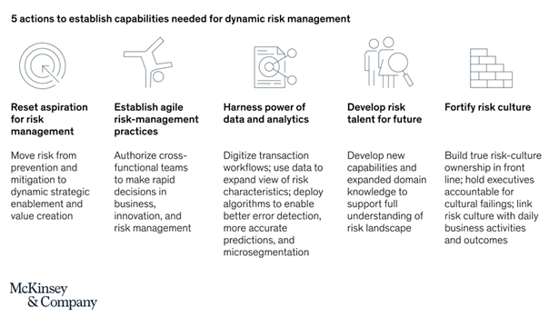 以下讨论描述了动态风险管理的核心,并概述了公司可以采取的行动来构建它。