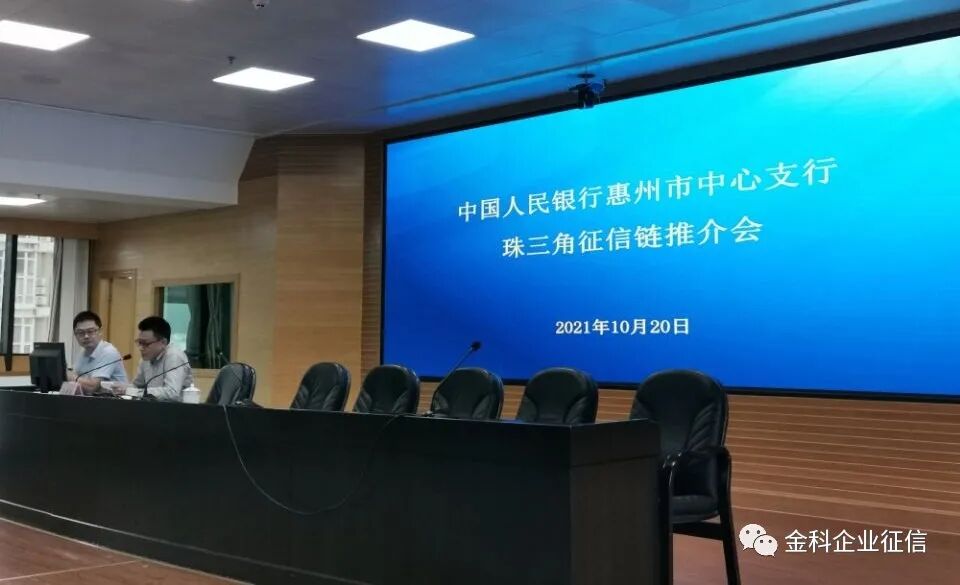 2021年10月20日,作为“珠江三角洲征信链”上链征信机构之一,广州金科企业征信有限公司参加在人民银行惠州市中心支行14楼会议室举办的征信机构与金融机构交流互动(产品推介)会,会议由人民银行惠州市中心支行征信科来主持,张晓东副行长致辞,人民银行广州分行征信处许詹良副处长作总结发言。