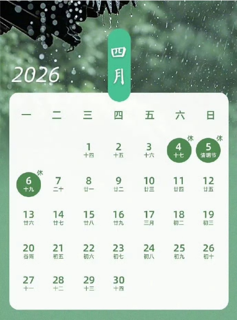 清明节放假安排如下:4月4日(周六)至4月6日(周一)连休3天,