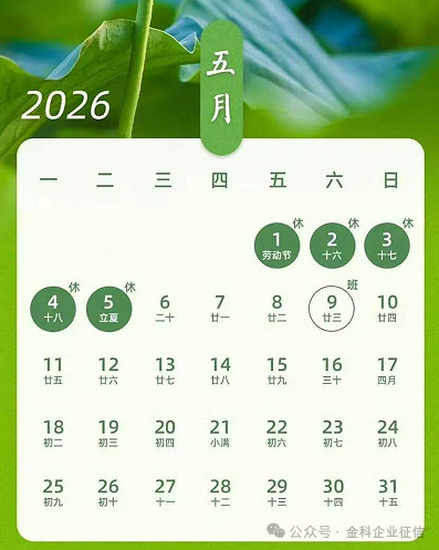 5月9日(周六)需补班。